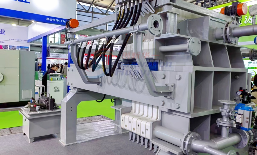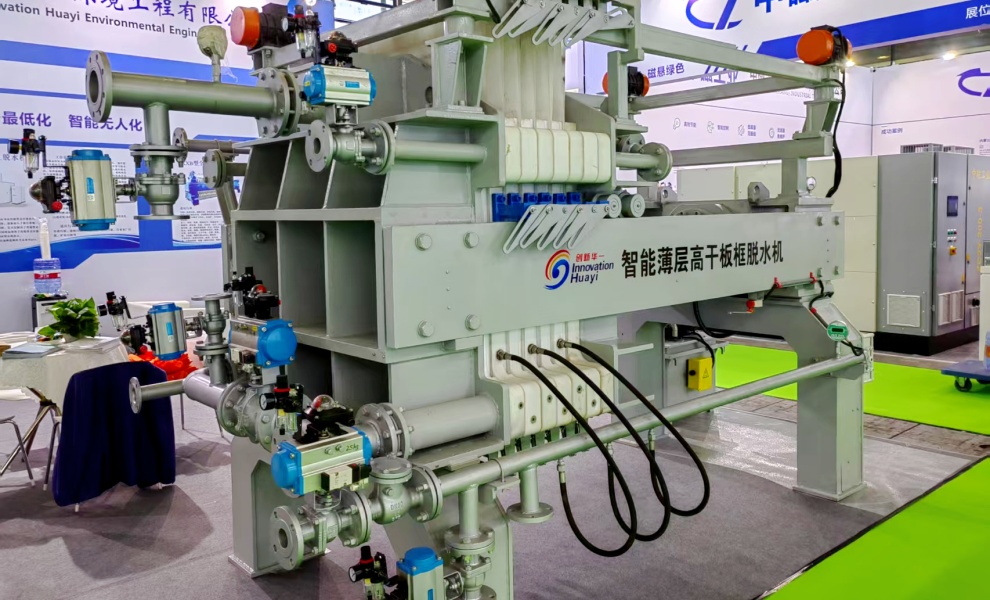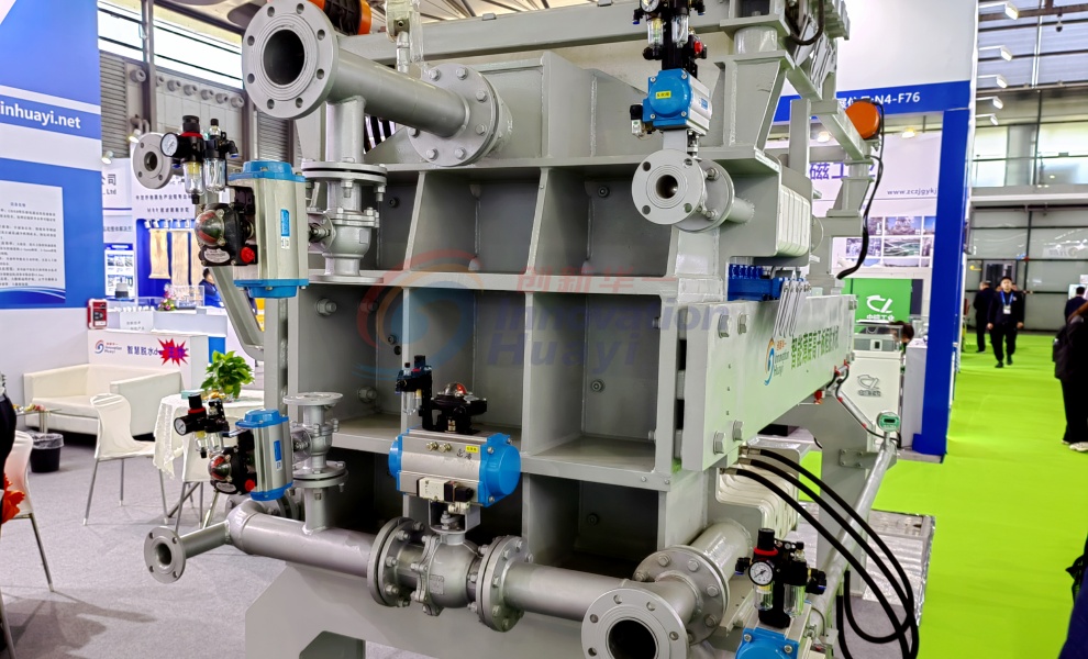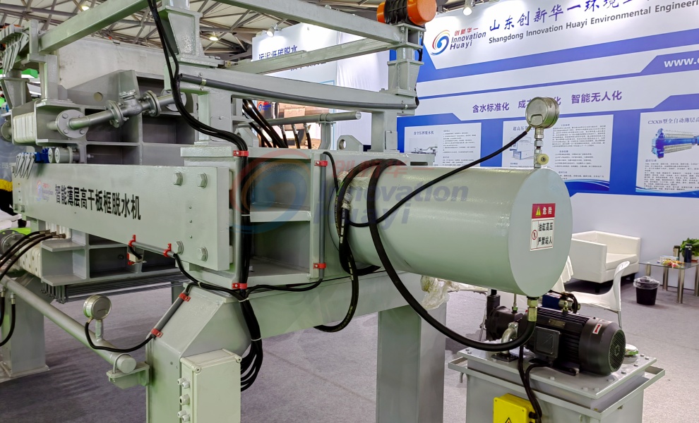 該機(jī)型是我公司研發(fā)生產(chǎn)的全新一代污泥深度脫水機(jī)。設(shè)備濾板可一次性全部拉開,并可以實現(xiàn)濾布整體振打,實現(xiàn)快速卸料,卸料完畢后設(shè)備所有濾布同時進(jìn)行沖洗;擠壓隔膜采用橡膠膜片,有更好的伸縮性,不需要腔室內(nèi)的污泥完全硬化,就可以進(jìn)行隔膜壓榨,提高了運(yùn)行效率,同時由于腔室內(nèi)的污泥沒有完全硬化,所以壓榨完后的濾餅會更薄更均勻,不存在濾餅中間含水率高的情況,含水率大大降低。